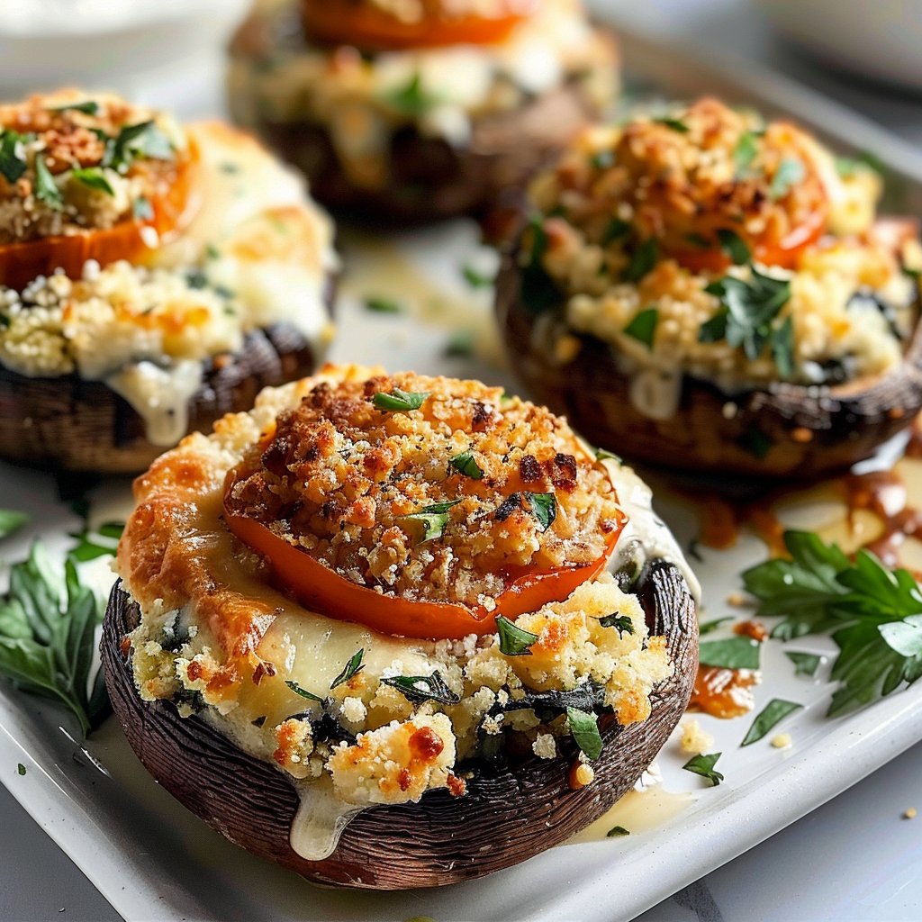 Crispy Tomato Stuffed Mushrooms are a deliciously satisfying appetizer that combines the earthy flavor of fresh mushrooms with a savory tomato filling. Each bite delivers a delightful crunch, complemented by rich cheese and aromatic garlic. Perfect for gatherings or cozy nights in, these stuffed mushrooms bring a burst of flavor to any occasion. With easy preparation and customizable ingredients, they are sure to impress your guests and leave everyone wanting more.