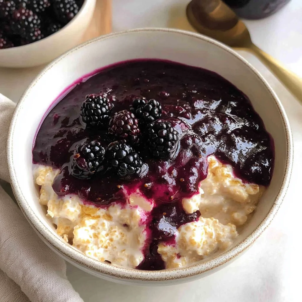 7. Serve: Spoon your rich custard oats into serving bowls and top generously with the vibrant mixed berry sauce. Serve warm for a cozy breakfast experience.