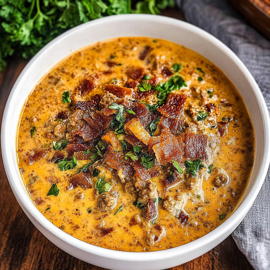 In conclusion, Keto Bacon Cheeseburger Soup is not only flavorful but also aligns perfectly with a low-carb lifestyle. Its combination of ingredients ensures you experience all the tastes of a traditional cheeseburger in a warm and comforting bowl of soup. comforting lasagna soup Whether you choose to customize it with toppings or prepare it ahead of time for convenience, this recipe is versatile and satisfying. Enjoy making this delightful dish and share it with family and friends who appreciate tasty keto meals!