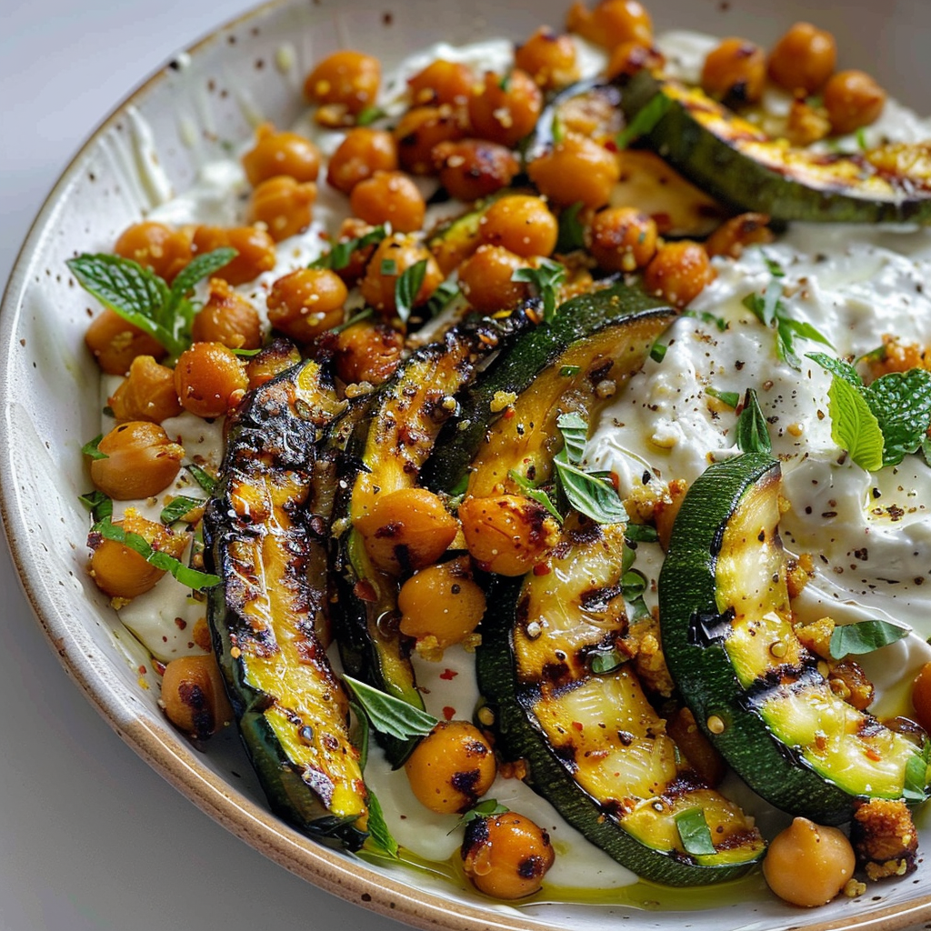 Lemony Grilled Zucchini & Crispy Chickpeas Over Tzatziki is a dish that dances on your taste buds, with zesty flavors and crunchy textures that create a delightful symphony of taste. Imagine biting into perfectly grilled zucchini, kissed by the sun, paired with crispy chickpeas that add an irresistible crunch—all enveloped in creamy tzatziki. layered zucchini goodness It’s like a Mediterranean vacation on your plate, and who wouldn’t want that?