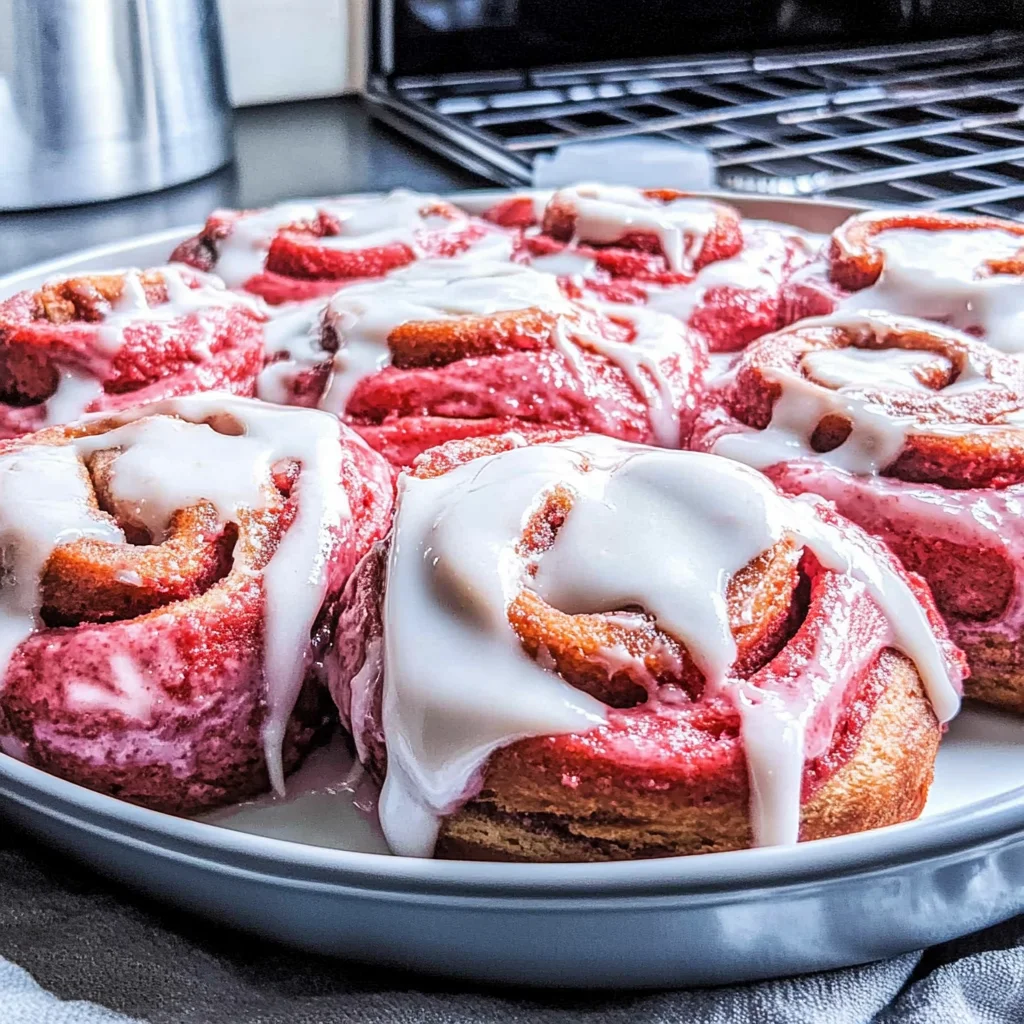 - Cream Cheese Frosting: Beat your frosting ingredients well for a smooth consistency. This adds a delightful creamy texture on top of your Pink Velvet Cinnamon Rolls.