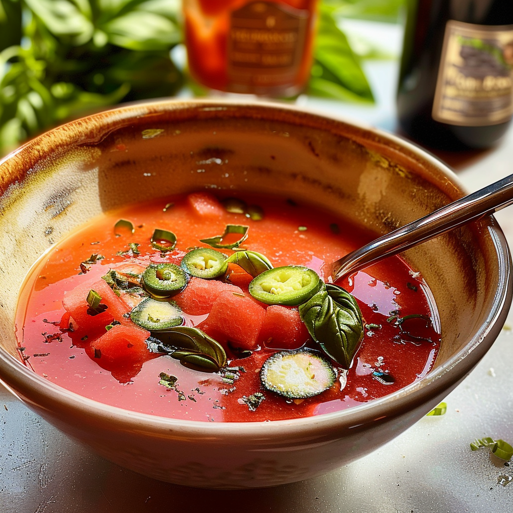 - This amazing Spicy watermelon gazpacho offers more than just flavor; it makes meal prep a breeze.