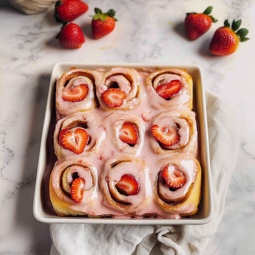 Indulge in the delightful experience of homemade Strawberry Cinnamon Rolls, where fluffy, warm dough meets sweet strawberries and aromatic cinnamon. Topped with a creamy glaze, these rolls are perfect for breakfast or as a decadent treat any time of day. The inviting aroma and vibrant colors will make them a favorite at your table!